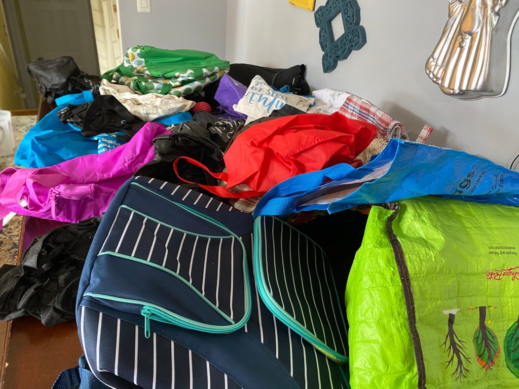 I’d hoped to get to meal planning today, but haven’t done much with it, yet. I did take some steps to make the actual process of grocery shopping a little easier though, starting with my reusable shopping bags. Before today, I must have kept every reusable bag I’ve collected over the past decade or so of using them. It would be wasteful not to, right? Except that when I go to the grocery store, if I remember my bags, it’s an overflowing tangle of insulated, simple cotton, foldable, produce-specific and a few ripped and barely usable bags and who wants to mess with that in middle of a check-out line? I packed up my favorites, put them in my trunk, ready to be used and repurposed the rest to bag up some of the kitchen and household donations piling up downstairs.