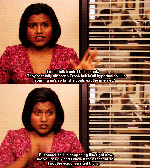 (in case you’re confused about the difference between smack talk and trash talk, here’s a helpful tutorial from Kelly Kapoor)