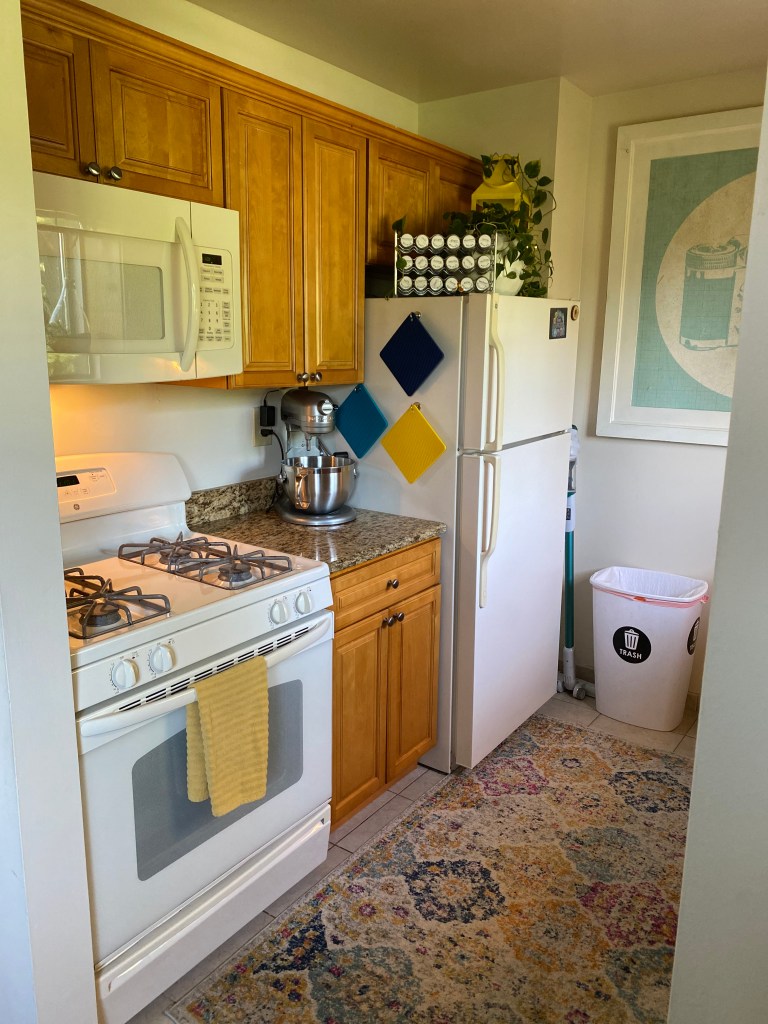 When I came to the showing for this apartment a couple months ago, the kitchen was fine.  Worn and dated…but fine. Cramped…but fine. The cabinet door tones didn’t match each other…totally fine. Don’t get me started on the metal blinds apartment builders love to put on every window that attract grime and rust and sound like a plane crash when you try to open or close them. But it was fine.